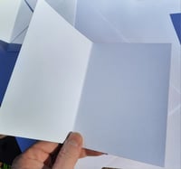 Heavy card stock, matte finish. Inside of card is blank. 4x6" white envelope included.
