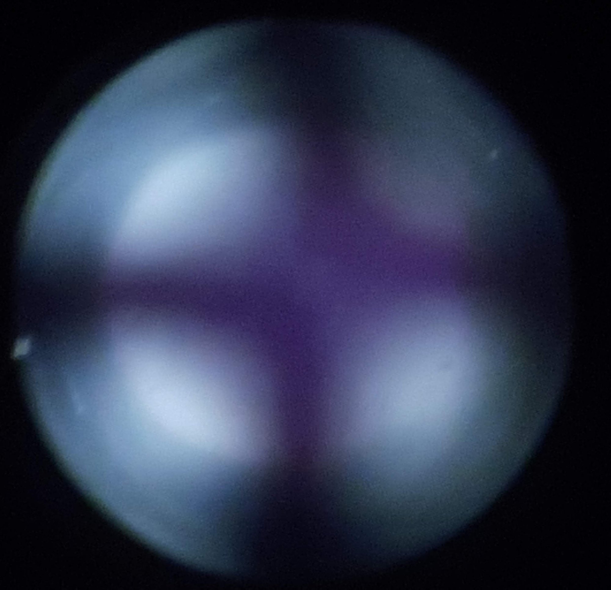Last picture is a photomicrograph of the crystal displaying uniaxial positive interference figures in transmitted conoscopic light using a Nikon Labophot-POL Polarizing microscope.